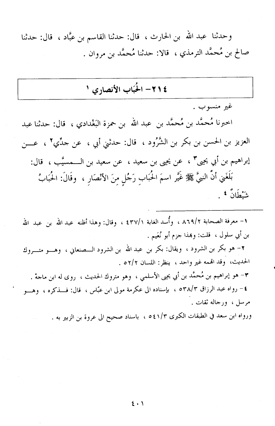أخبرنا محمد بن محمد بن عبد الله بن حمزة البغدادي، قال: حدثنا عبد العزيز بن الحسن بن بكر بن الشرود، قال: حدثني أبي، عن جدي، عن إبراهيم بن أبي يحيى، عن يحيى بن سعيد، عن سعيد بن المسيب، قال: بلغني أن النبي صلى الله عليه وسلم غير اسم الحباب رجل من الأنصار، وقال: الحباب شيطان.