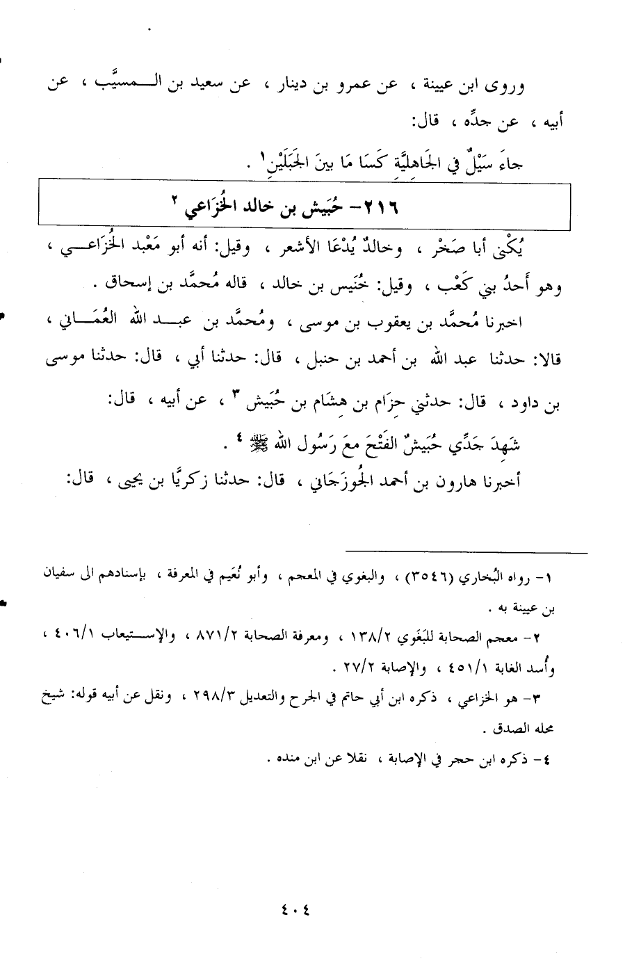 أخبرنا محمد بن يعقوب بن موسى، ومحمد بن عبد الله العماني، قالا: حدثنا عبد الله بن أحمد بن حنبل، قال: حدثنا أبي، قال: حدثنا موسى بن داود، قال: حدثني حزام بن هشام بن حبيش، عن أبيه، قال: شهد جدي حبيش الفتح مع رسول الله صلى الله عليه وسلم.