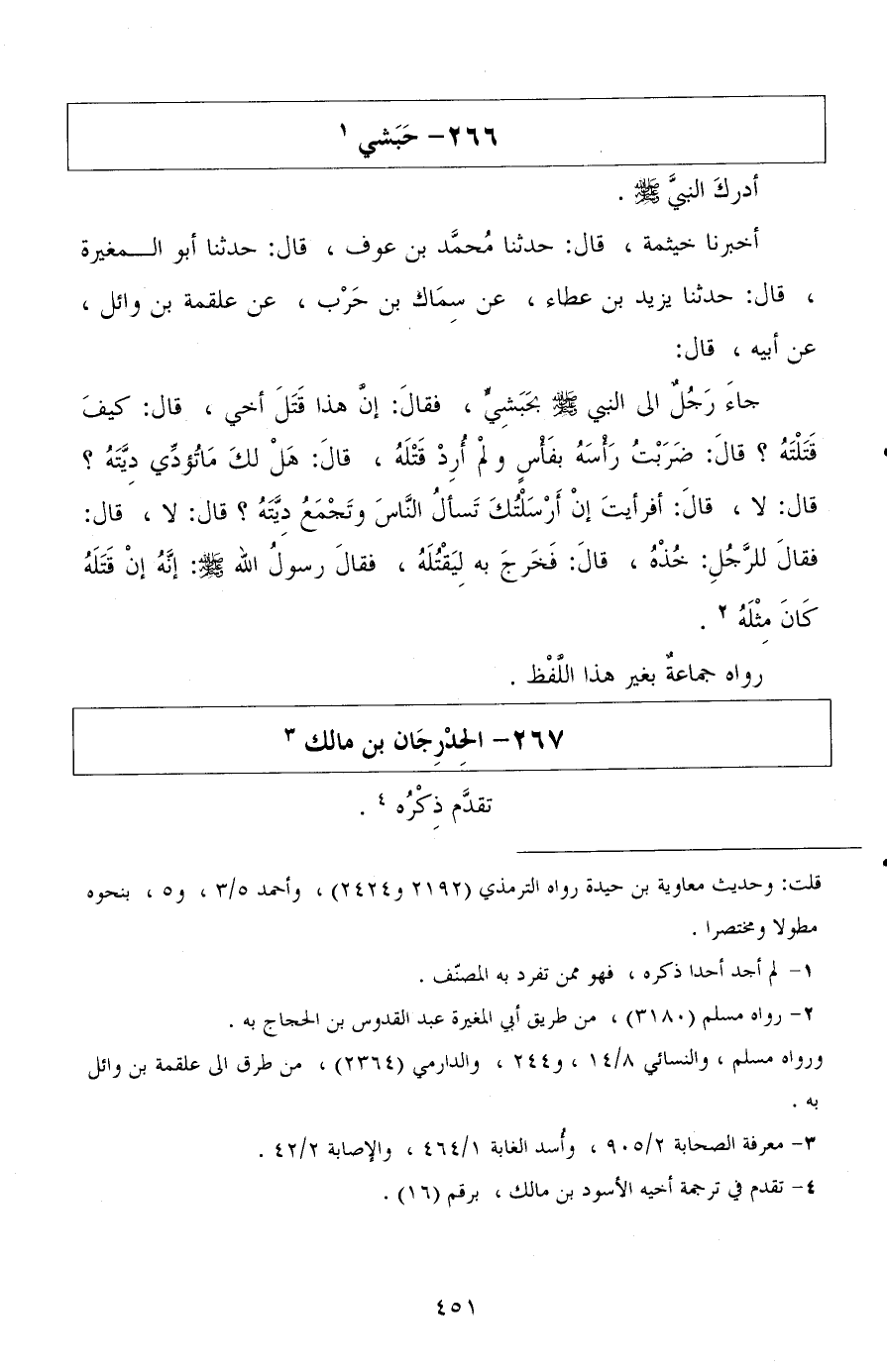 أخبرنا خيثمة، قال: حدثنا محمد بن عوف، قال: حدثنا أبو المغيرة، قال: حدثنا يزيد بن عطاء، عن سماك بن حرب، عن علقمة بن وائل، عن أبيه، قال: جاء رجل إلى النبي صلى الله عليه وسلم بحبشي، فقال: إن هذا قتل أخي، قال: كيف قتلته؟ قال: ضربت رأسه بفأس ولم أرد قتله، قال: هل لك ما تؤدي ديته؟ قال: لا، قال: أفرأيت إن أرسلتك تسأل الناس وتجمع ديته؟ قال: لا، قال: فقال للرجل: خذه، قال: فخرج به ليقتله، فقال رسول الله صلى الله عليه وسلم: إنه إن قتله كان مثله.