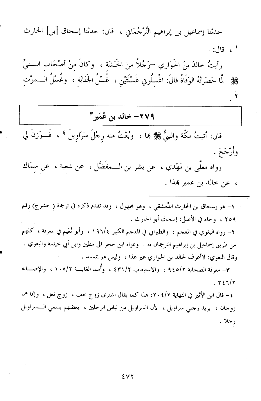 حدثنا إسماعيل بن إبراهيم الترجماني، قال: حدثنا إسحاق بن الحارث، قال: رأيت خالد بن الحواري رجلا من الحبشة، وكان من أصحاب النبي صلى الله عليه وسلم لما حضرته الوفاة قال: اغسلوني غسلتين غسل الجنابة وغسل الموت.