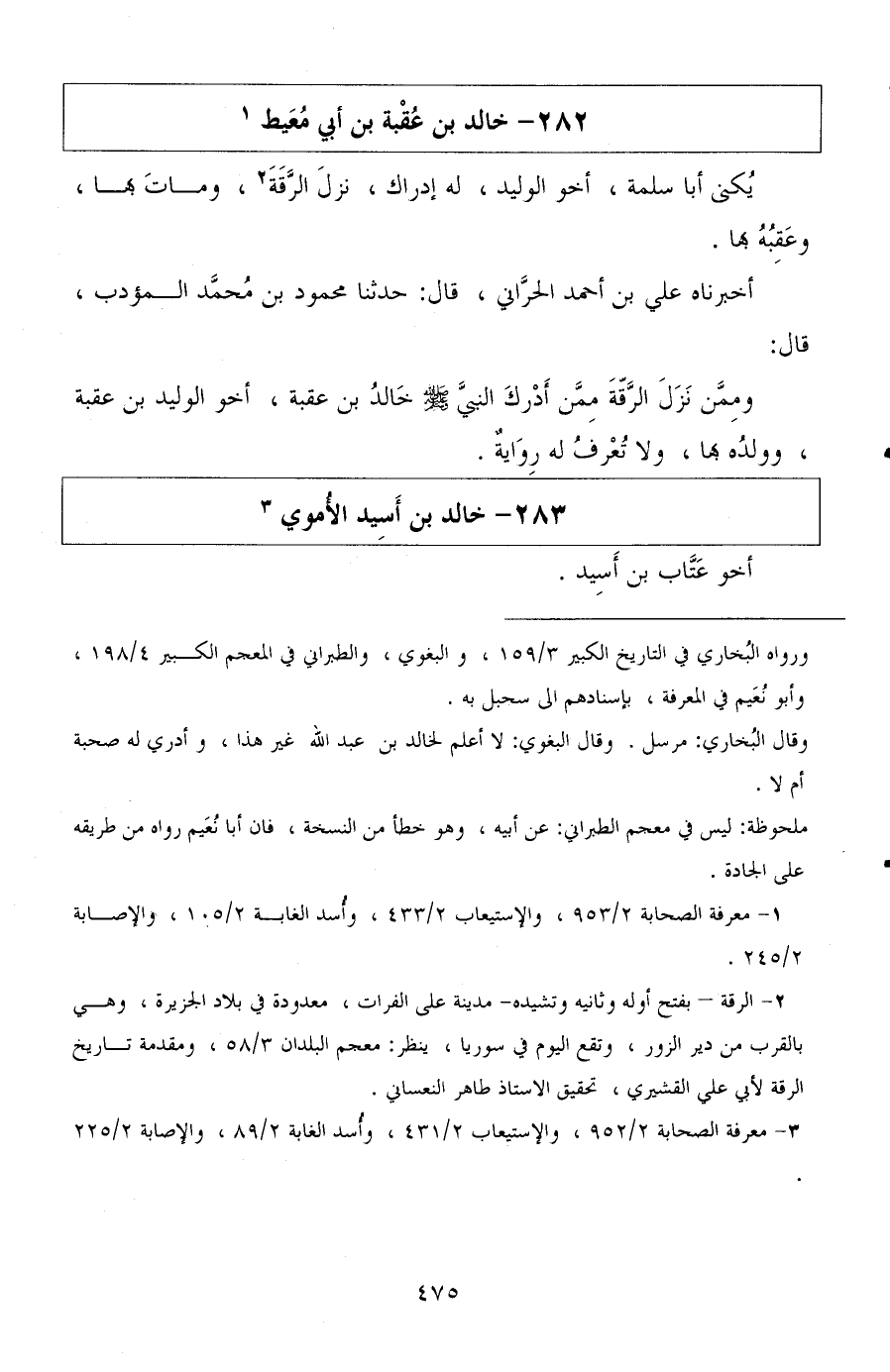 أخبرناه علي بن أحمد الحراني، قال: حدثنا محمود بن محمد المؤدب، قال: وممن نزل الرقة ممن أدرك النبي صلى الله عليه وسلم خالد بن عقبة أخو الوليد بن عقبة وولده بها ولا تعرف له رواية.