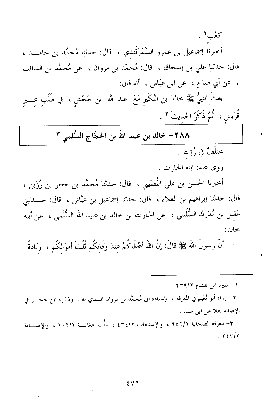 أخبرنا إسماعيل بن عمرو السمرقندي، قال: حدثنا محمد بن حامد، قال: حدثنا علي بن إسحاق، قال: محمد بن مروان، عن محمد بن السائب، عن أبي صالح، عن ابن عباس، أنه قال: بعث النبي صلى الله عليه وسلم خالد بن البكير مع عبد الله بن جحش في طلب عير قريش، ثم ذكر الحديث.