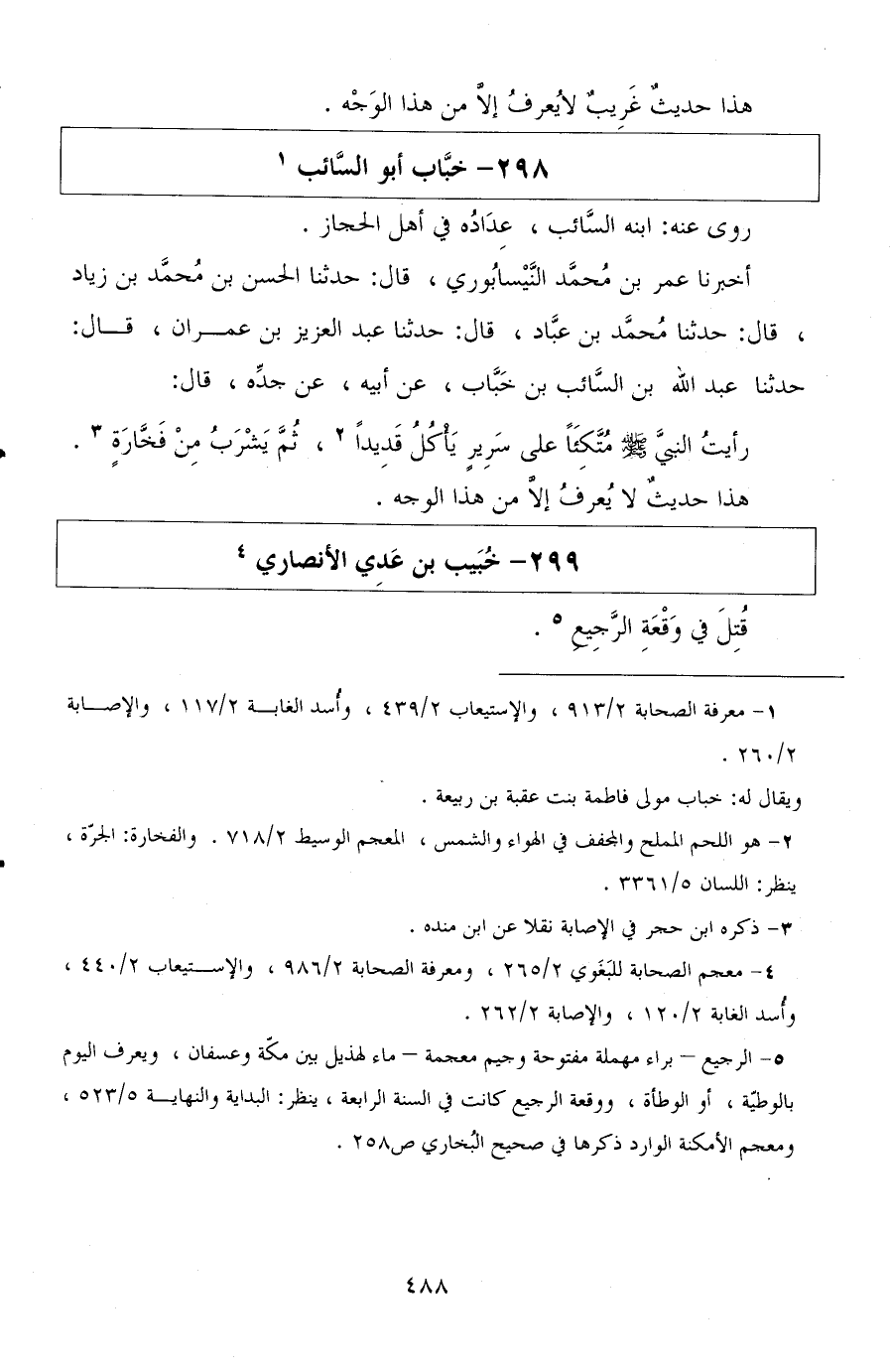 أخبرنا عمر بن محمد النيسابوري، قال: حدثنا الحسن بن محمد بن زياد، قال: حدثنا محمد بن عباد، قال: حدثنا عبد العزيز بن عمران، قال: حدثنا عبد الله بن السائب بن خباب، عن أبيه، عن جده، قال: رأيت النبي صلى الله عليه وسلم متكئًا على سرير يأكل قديدًا ثم يشرب من فخارة.