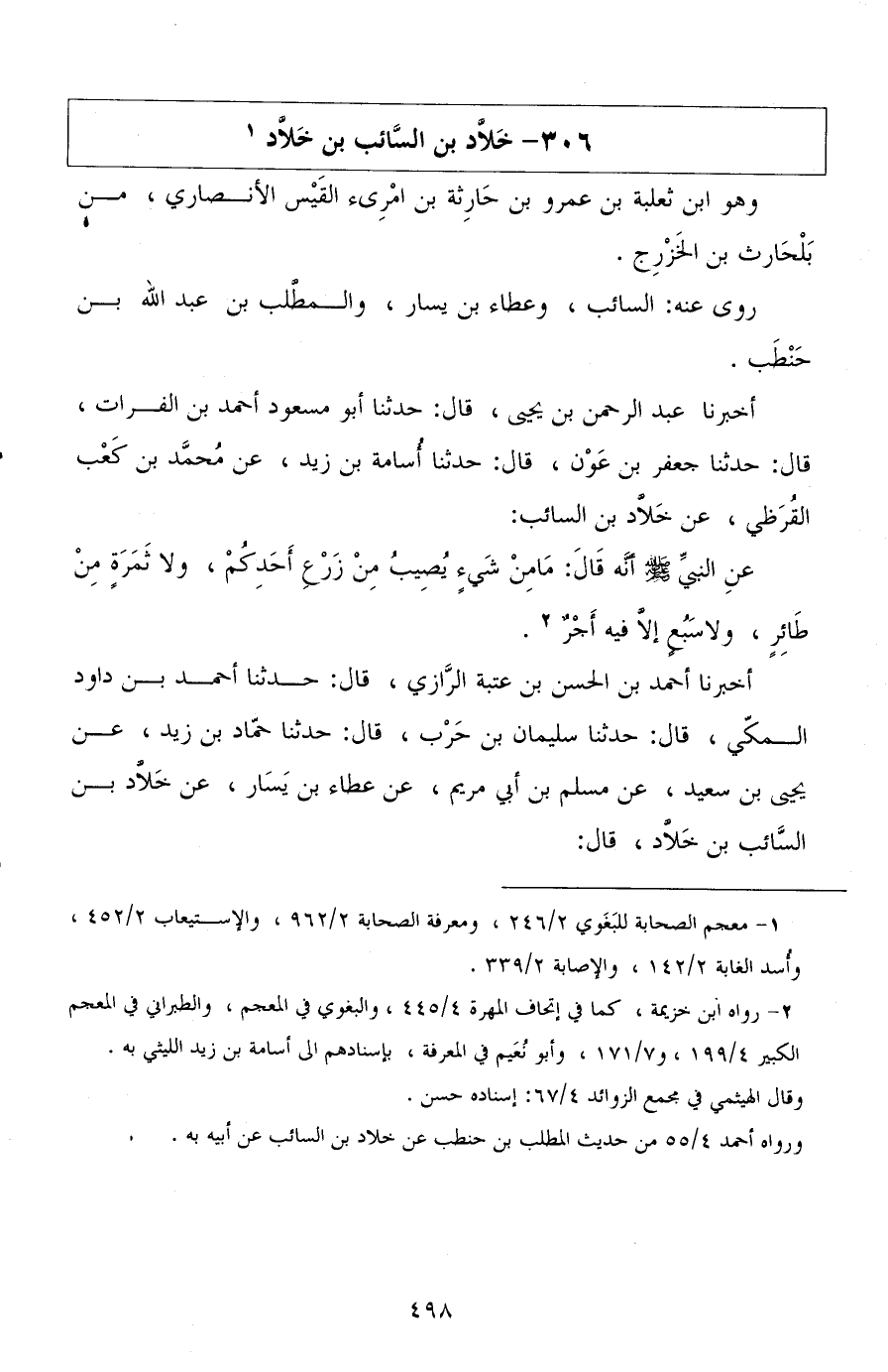 أخبرنا عبد الرحمن بن يحيى، قال: حدثنا أبو مسعود أحمد بن الفرات، قال: حدثنا جعفر بن عون، قال: حدثنا أسامة بن زيد، عن محمد بن كعب القرظي، عن خلاد بن السائب: عن النبي صلى الله عليه وسلم أنه قال: ما من شيء يصيب من زرع أحدكم ولا ثمرة من طائر ولا سبع إلا فيه أجر.