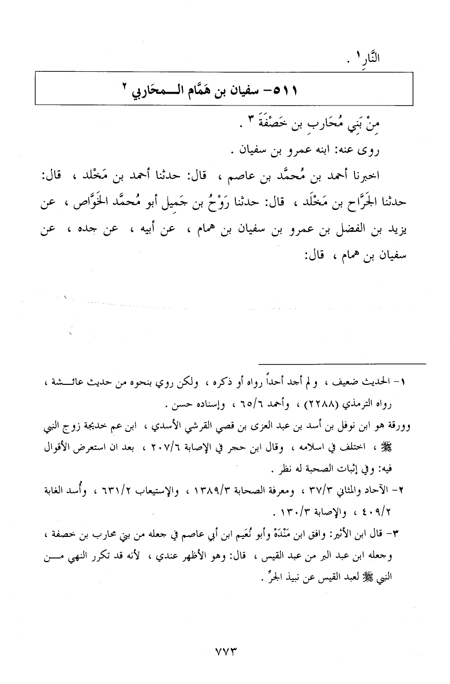 أخبرنا أحمد بن محمد بن عاصم، قال: حدثنا أحمد بن مخلد، قال: حدثنا الجراح بن مخلد، قال: حدثنا روح بن جميل أبو محمد الخواص، عن يزيد بن الفضل بن عمرو بن سفيان بن همام، عن أبيه، عن جده، عن سفيان بن همام، قال: