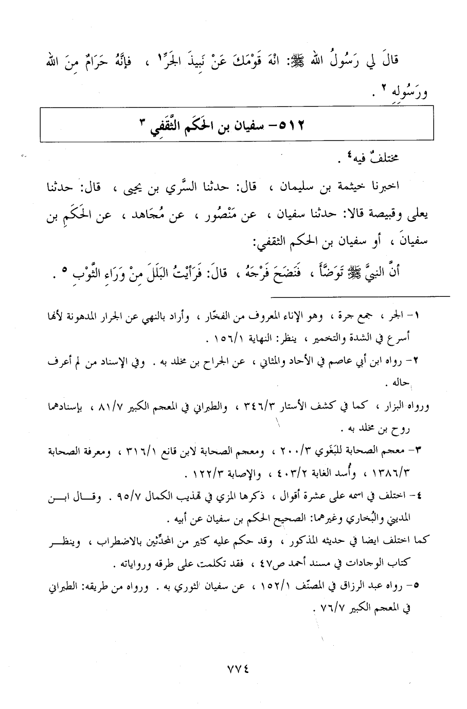 أخبرنا خيثمة بن سليمان، قال: حدثنا السري بن يحيى، قال: حدثنا يعلى، وقبيصة، قالا: حدثنا سفيان، عن منصور، عن مجاهد، عن الحكم بن سفيان، أو سفيان بن الحكم الثقفي: أن النبي صلى الله عليه وسلم توضأ، فنضح فرجه، قال: فرأيت البلل من وراء الثوب.