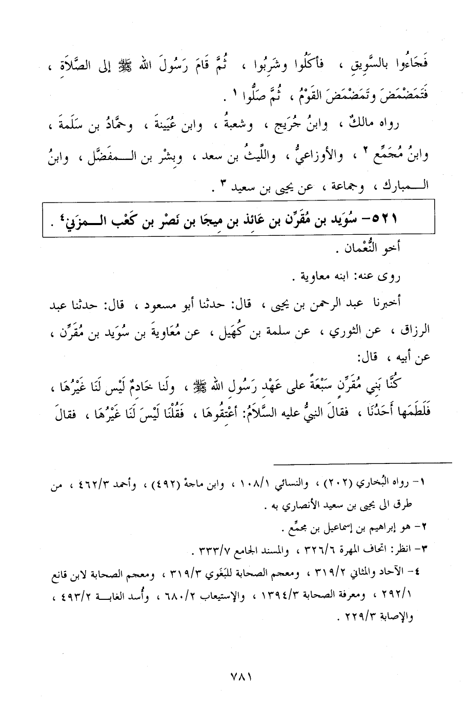 أخبرنا عبد الرحمن بن يحيى، قال: حدثنا أبو مسعود، قال: حدثنا عبد الرزاق، عن الثوري، عن سلمة بن كهيل، عن معاوية بن سويد بن مقرن، عن أبيه، قال: كنا بني مقرن سبعة على عهد رسول الله صلى الله عليه وسلم، ولنا خادم ليس لنا غيرها، فلطمها أحدنا، فقال النبي عليه السلام: أعتقوها، فقلنا ليس لنا غيرها، فقال