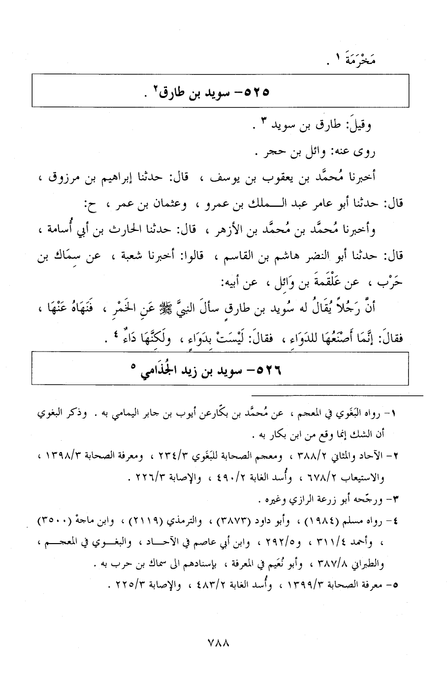 ح وأخبرنا محمد بن يعقوب بن الأزهر، قال: حدثنا الحارث بن أبي أسامة، قال: حدثنا أبو النضر هاشم بن القاسم، قالوا: أخبرنا شعبة، عن سماك بن حرب، عن علقمة بن وائل، عن أبيه: أن رجلا يقال له سويد بن طارق سأل النبي صلى الله عليه وسلم عن الخمر، فنهاه عنها، فقال: إنما أصنعها للدواء، فقال: «ليست بدواء، ولكنها داء» .