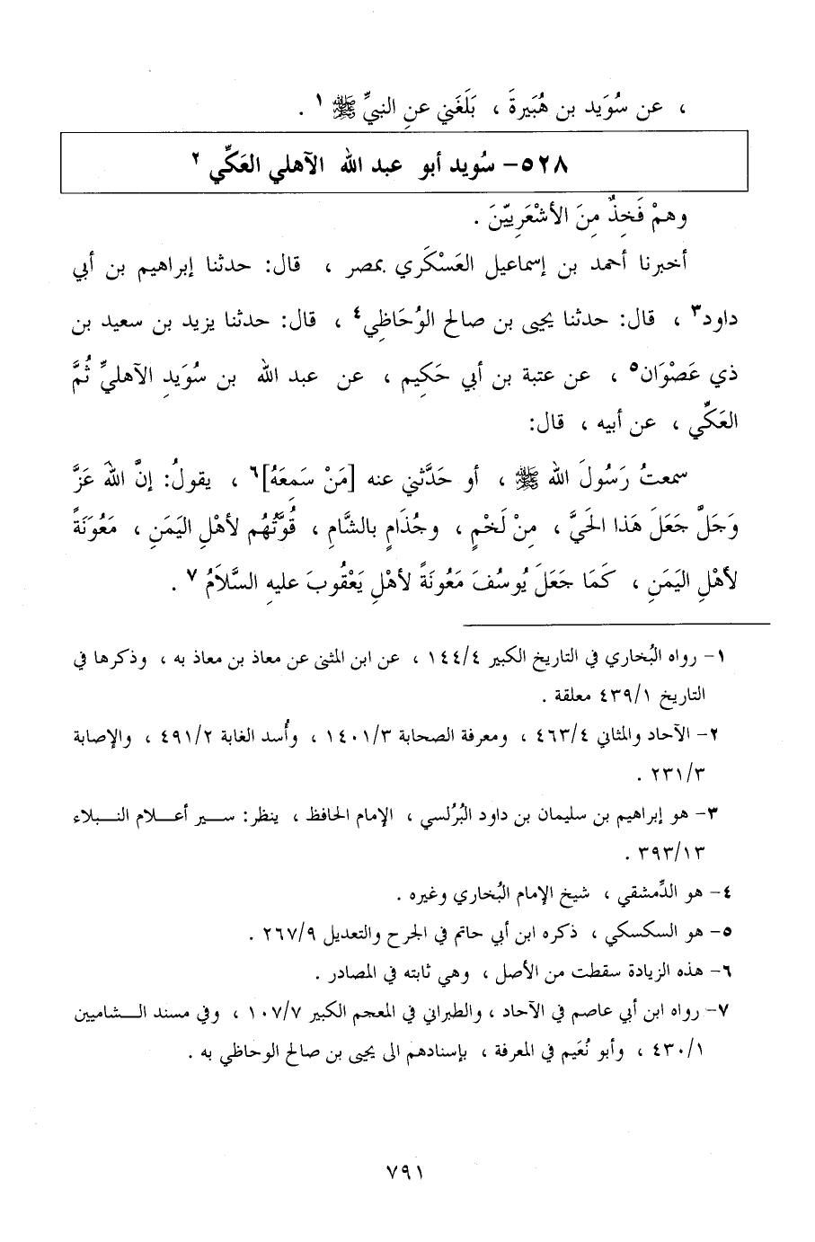 أخبرنا أحمد بن إسماعيل العسكري بمصر، قال: حدثنا إبراهيم بن أبي داود، قال: حدثنا يحيى بن صالح الوحاظي، قال: حدثنا يزيد بن سعيد بن ذي عصوان، عن عتبة بن أبي حكيم، عن عبد الله بن سويد الآهلي ثم العكي، عن أبيه، قال: سمعت رسول الله صلى الله عليه وسلم، أو حدثني عنه من سمعه، يقول: إن الله عز وجل جعل هذا الحي، من لخم، وجذام بالشام، قوتهم لأهل اليمن، معونة لأهل اليمن، كما جعل يوسف معونة لأهل يعقوب عليه السلام.