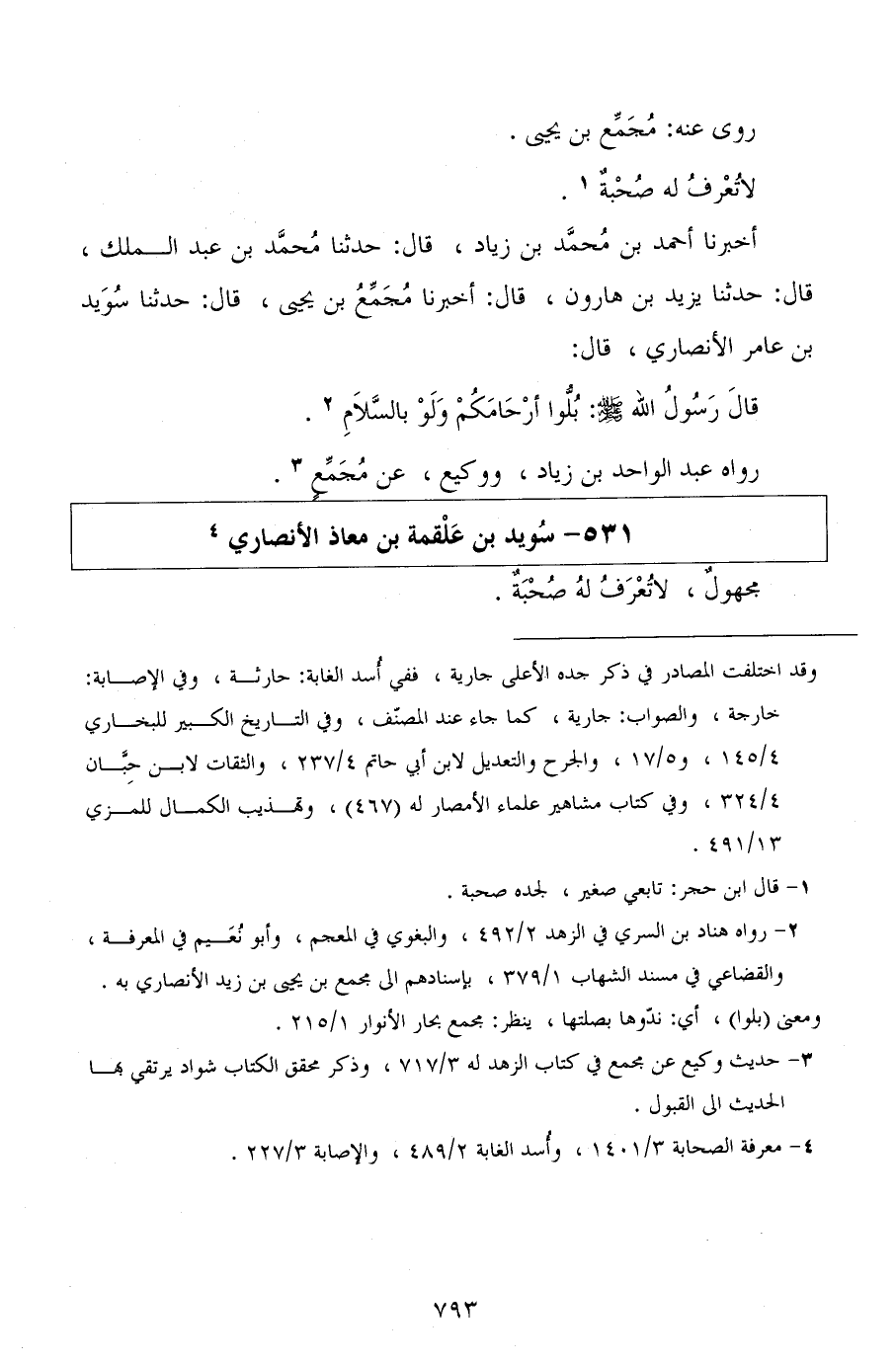 أخبرنا أحمد بن محمد بن زياد، قال: حدثنا محمد بن عبد الملك، قال: حدثنا يزيد بن هارون، قال: أخبرنا مجمع بن يحيى، قال: حدثنا سويد بن عامر الأنصاري، قال: قال رسول الله صلى الله عليه وسلم: بلوا أرحامكم ولو بالسلام.