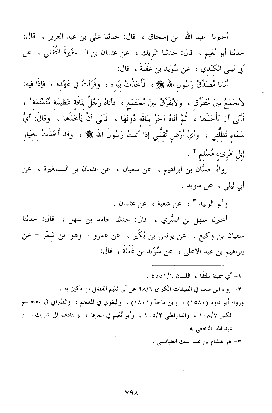 أخبرنا سهل بن السري، قال: حدثنا حامد بن سهل، قال: حدثنا سفيان بن وكيع، عن يونس بن بكير، عن عمرو وهو ابن شمر عن إبراهيم بن عبد الأعلى، عن سويد بن غفلة، قال: