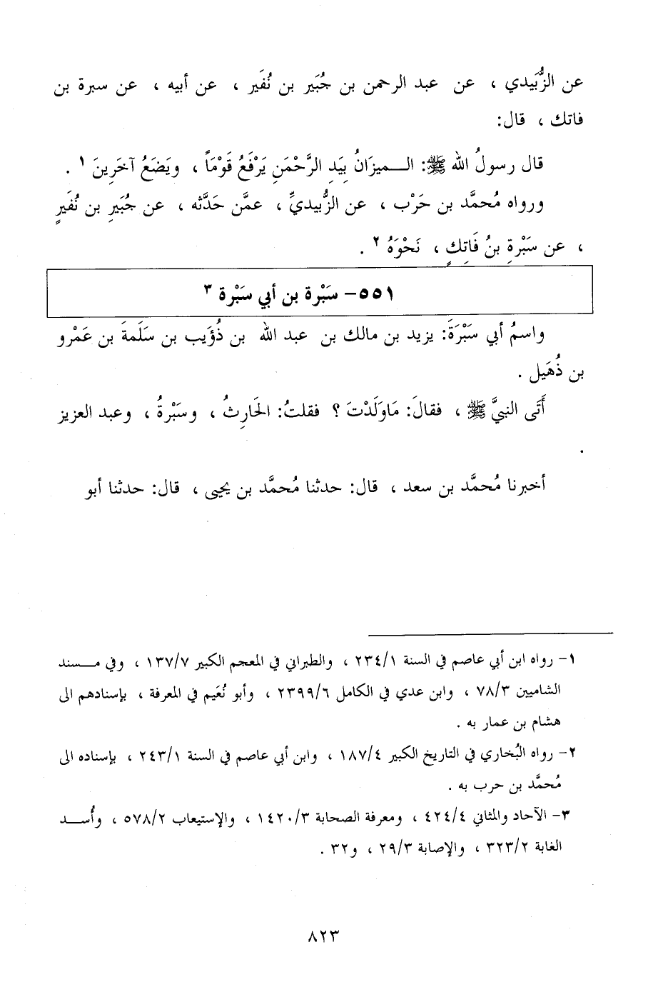 عن الزبيدي، عن عبد الرحمن بن جبير بن نفير، عن أبيه، عن سبرة بن فاتك، قال: قال رسول الله صلى الله عليه وسلم: «الميزان بيد الرحمن يرفع قومًا، ويضع آخرين» .