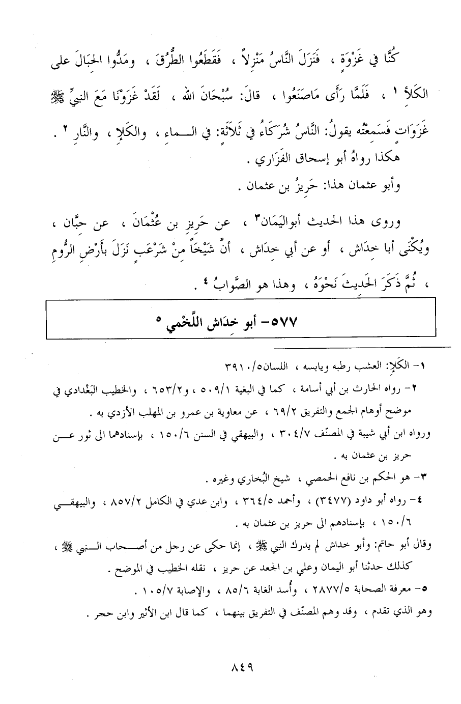 وروى هذا الحديث أبو اليمان، عن حريز بن عثمان، عن حبان، ويكنى أبا خداش، أو عن أبي خداش، أن شيخًا من شرعب نزل بأرض الروم، ثم ذكر ال حديث نحوه، وهذا هو الصواب.