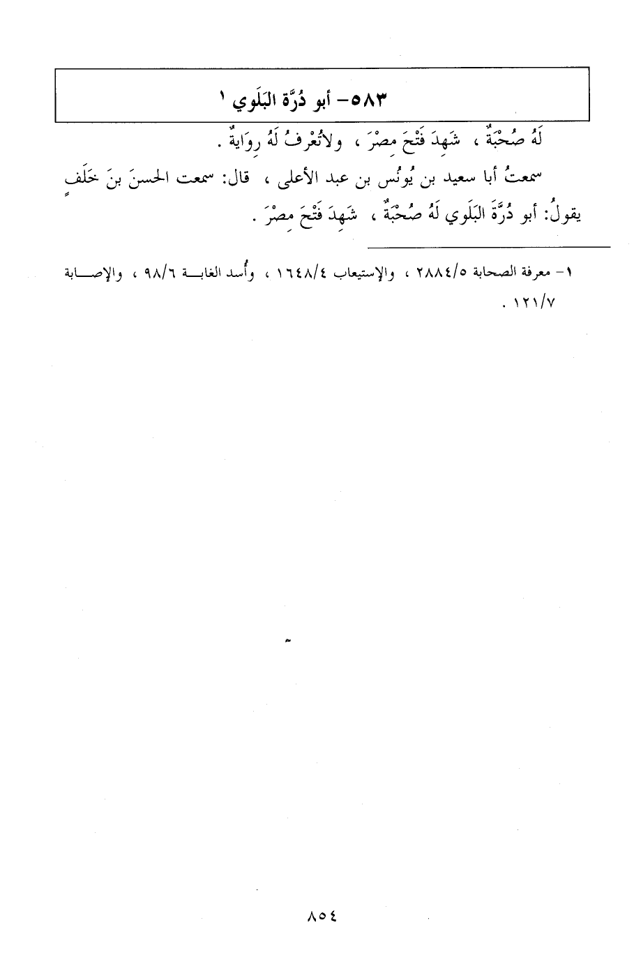 سمعت أبا سعيد بن يونس بن عبد الأعلى، قال: سمعت الحسن بن خلف يقول: أبو درة البلوي له صحبة، شهد فتح مصر.