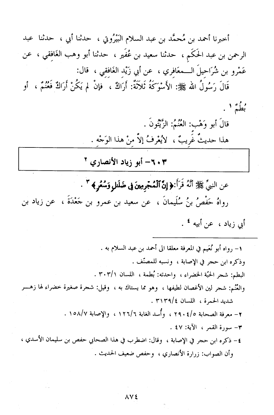 أخبرنا أحمد بن محمد بن عبد السلام البيروتي، حدثنا أبي، حدثنا عبد الرحمن بن عبد الحكم، حدثنا سعيد بن عفير، حدثنا أبو وهب الغافقي، عن عمرو بن شراحيل المعافري، عن أبي زيد الغافقي، قال: قال رسول الله صلى الله عليه وسلم: الأسوكة ثلاثة: أراك، فإن لم يكن أراك فعنم، أو بطم.
