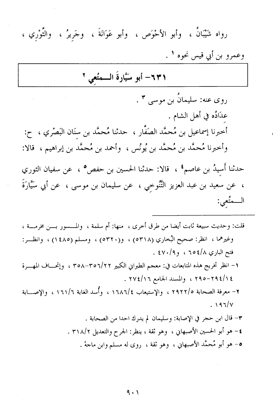 ح وأخبرنا محمد بن محمد بن يونس، وأحمد بن محمد بن إبراهيم، قالا: حدثنا أسيد بن عاصم، قالا: حدثنا الحسين بن حفص، عن سفيان الثوري، عن سعيد بن عبد العزيز التنوخي، عن سليمان بن موسى، عن أبي سيارة المتعي: