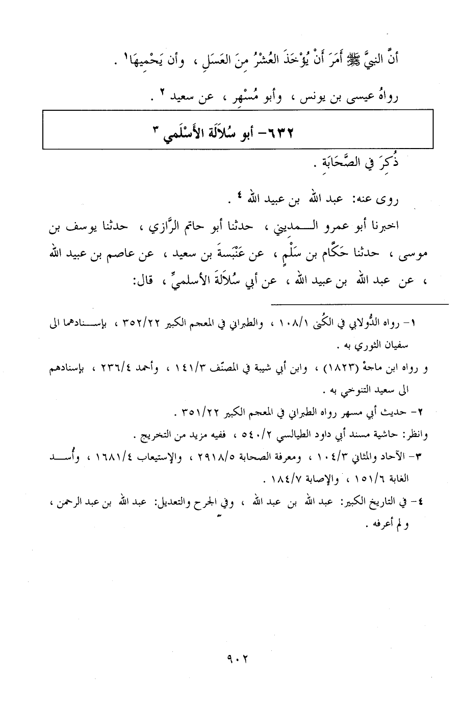 أخبرنا أبو عمرو المديني، حدثنا أبو حاتم الرازي، حدثنا يوسف بن موسى، حدثنا حكام بن سلم، عن عنبسة بن سعيد، عن عاصم بن عبيد الله، عن عبد الله بن عبيد الله، عن أبي سلالة الأسلمي، قال: