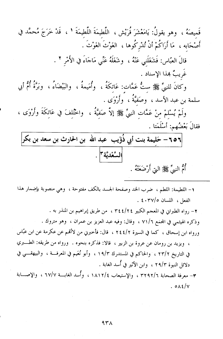 ولم يسلم من عمات النبي صلى الله عليه وسلم إلا صفية، واختلف في عاتكة وأروى، فقال بعضهم: أسلمتا.