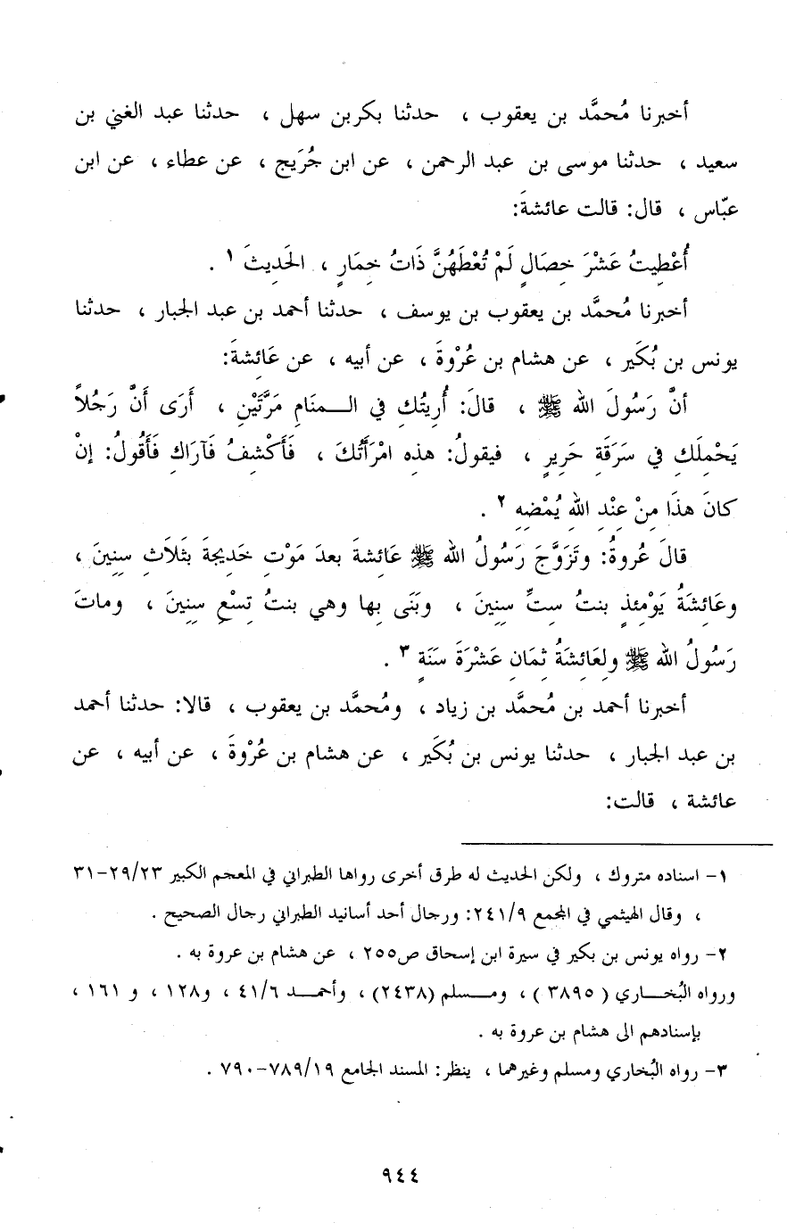 أخبرنا أحمد بن محمد بن زياد، ومحمد بن يعقوب، قالا: حدثنا أحمد بن عبد الجبار، حدثنا يونس بن بكير، عن هشام بن عروة، عن أبيه، عن عائشة قالت: