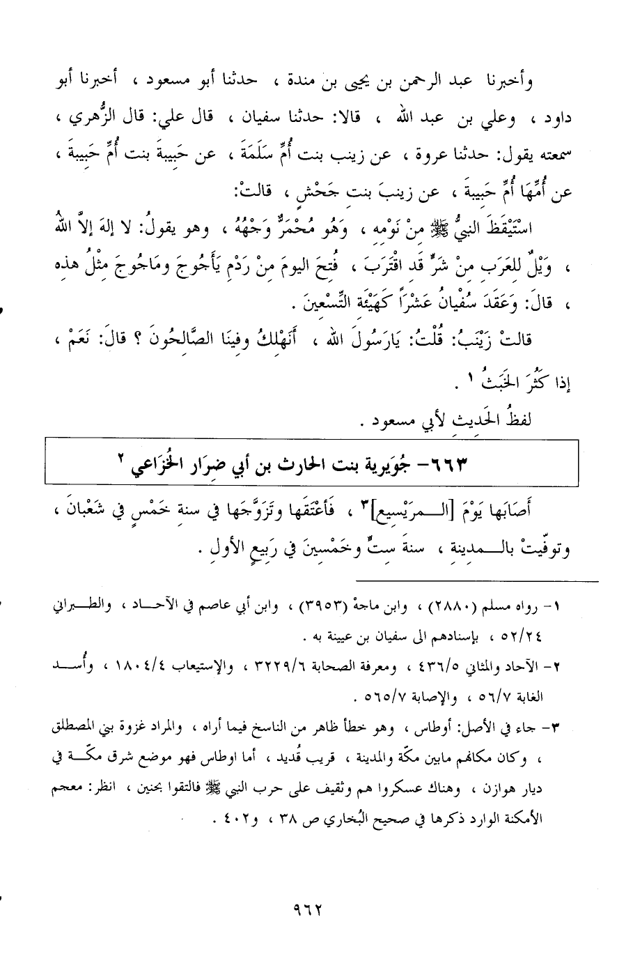 وأخبرنا عبد الرحمن بن يحيى بن مندة، حدثنا أبو مسعود، أخبرنا أبو داود، وعلي بن عبد الله، قالا: حدثنا سفيان، قال علي: قال الزهري، سمعته يقول: حدثنا عروة، عن زينب بنت أم سلمة، عن حبيبة بنت أم حبيبة، عن أمها أم حبيبة، عن زينب بنت جحش، قالت: استيقظ النبي صلى الله عليه وسلم من نومه، وهو محمر وجهه، وهو يقول: لا إله إلا الله، ويل للعرب من شر قد اقترب، فتح اليوم من ردم يأجوج وماجوج مثل هذه، قال: وعقد سفيان عشرًا كهيئة التسعين.