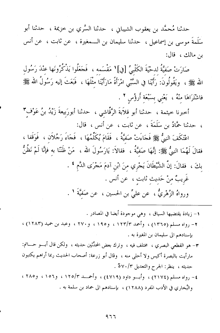 أخبرنا خيثمة، حدثنا أبو قلابة الرقاشي، حدثنا أبو ربيعة زيد بن عوف، حدثنا حماد بن سلمة، عن ثابت، عن أنس، قال: اعتكف النبي صلى الله عليه وسلم فجاءت صفية، فقام يكلمها، فجاء رجلان، فوقفا، فقال لهما النبي صلى الله عليه وسلم: إنها صفية، فقالا: يا رسول الله، من ظننا به فإنا لم نظن بك، فقال: إن الشيطان يجري من ابن آدم مجرى الدم.