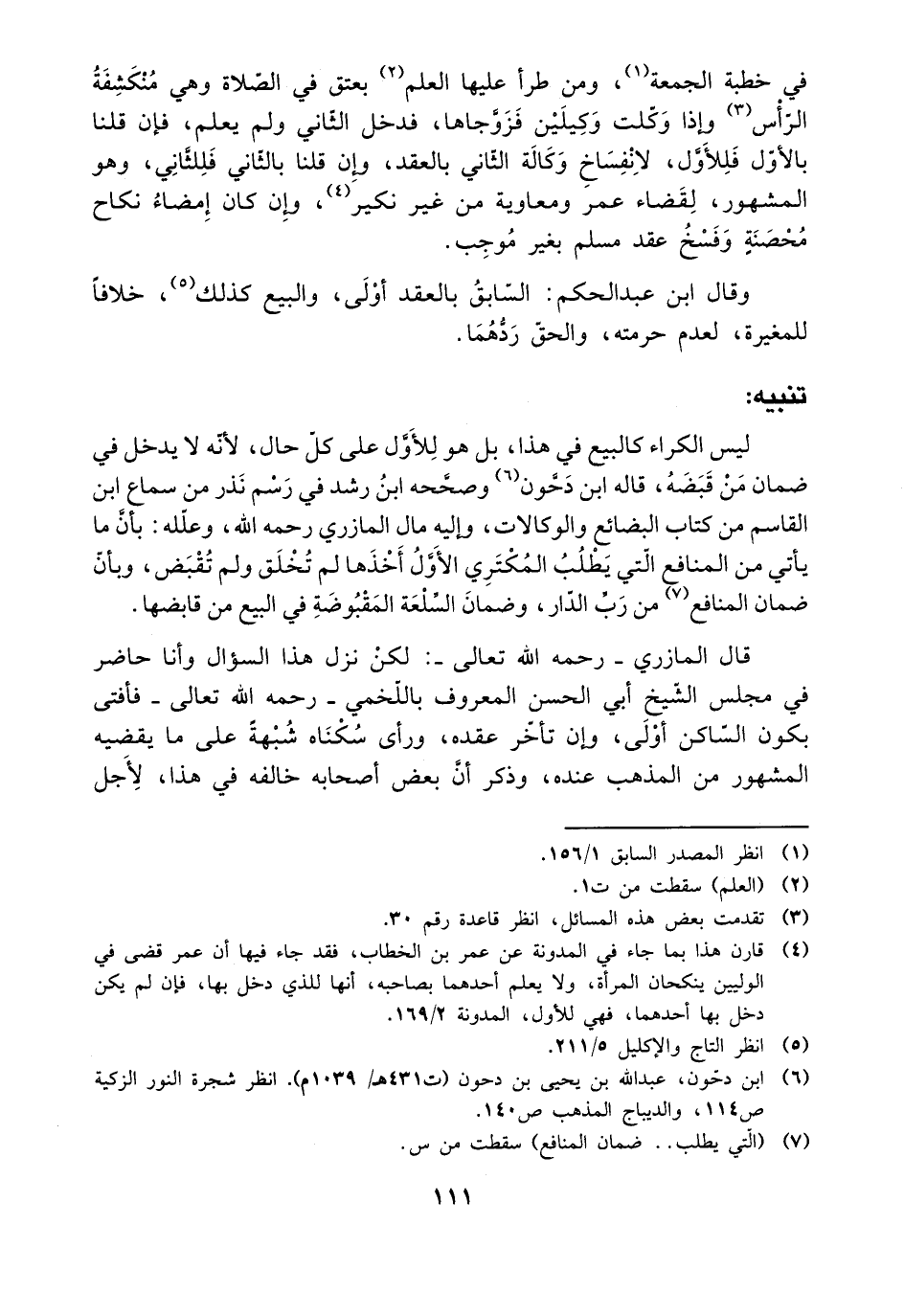 قال المازري – رحمه الله تعالى-: لكن نزل هذا السؤال وأنا حاضر في مجلس الشيخ أبي الحسن المعروف باللخمي- رحمه الله تعالى- فأفتى بكون الساكن أولى، وإن تأخر عقده، ورأى سُكناه شبهةً على ما يقضيه المشهور من المذهب عنده، وذكر أن بعض أصحابه خالفه في هذا، لأجل