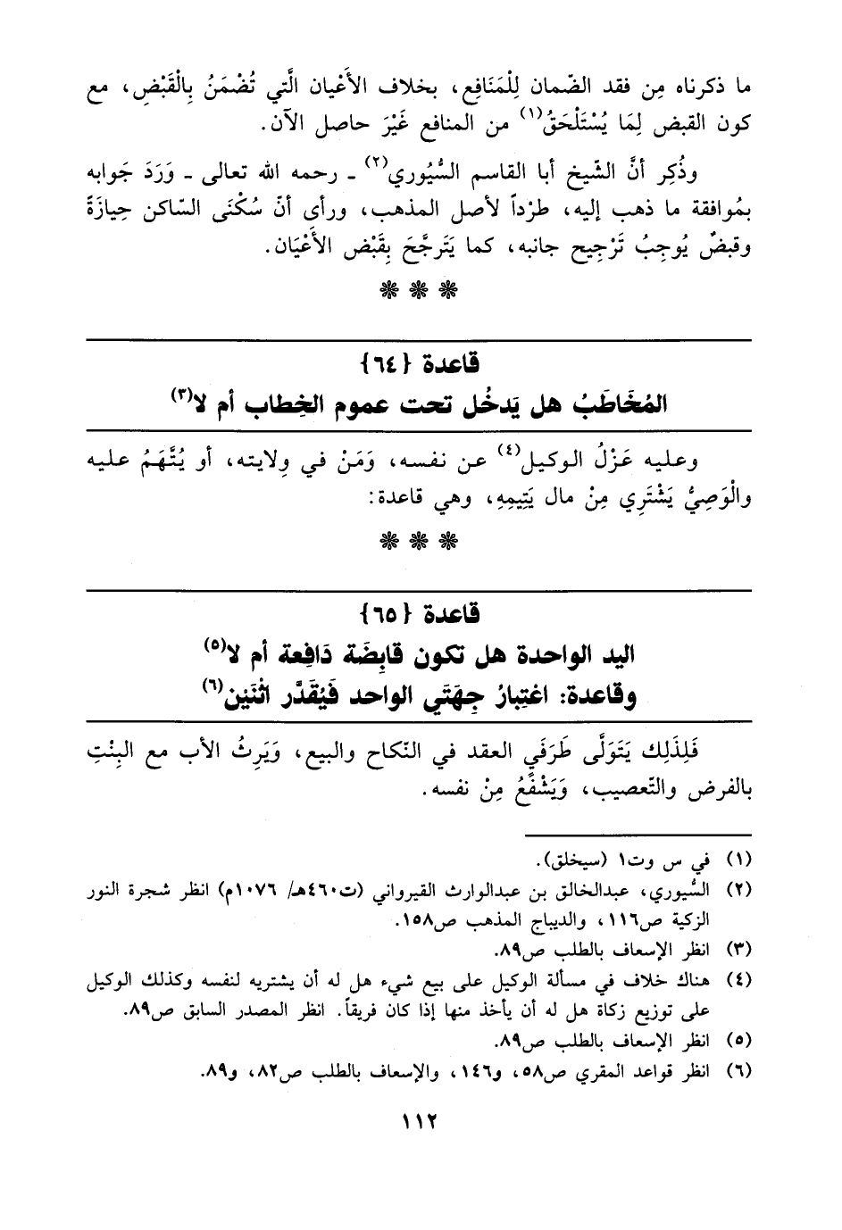 وذُكر بأن الشيخ أبا القاسم السيوري- رحمه الله تعالى- ورد جوابه بموافقة ما ذهب إليه، طرداً لأصل المذهب، ورأى أن سُكنى الساكن حيازة وقبضٌ يوجب ترجيح جانبه، كما يترجح بقبض الأعيان.