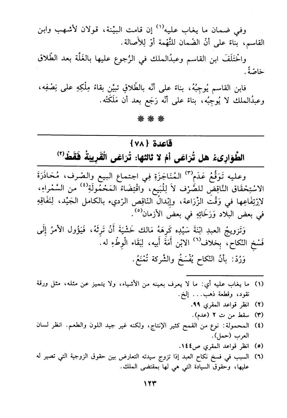 واختلف ابن القاسم وعبد الملك في الرجوع عليه بالغلة بعد الطلاق خاصةً.