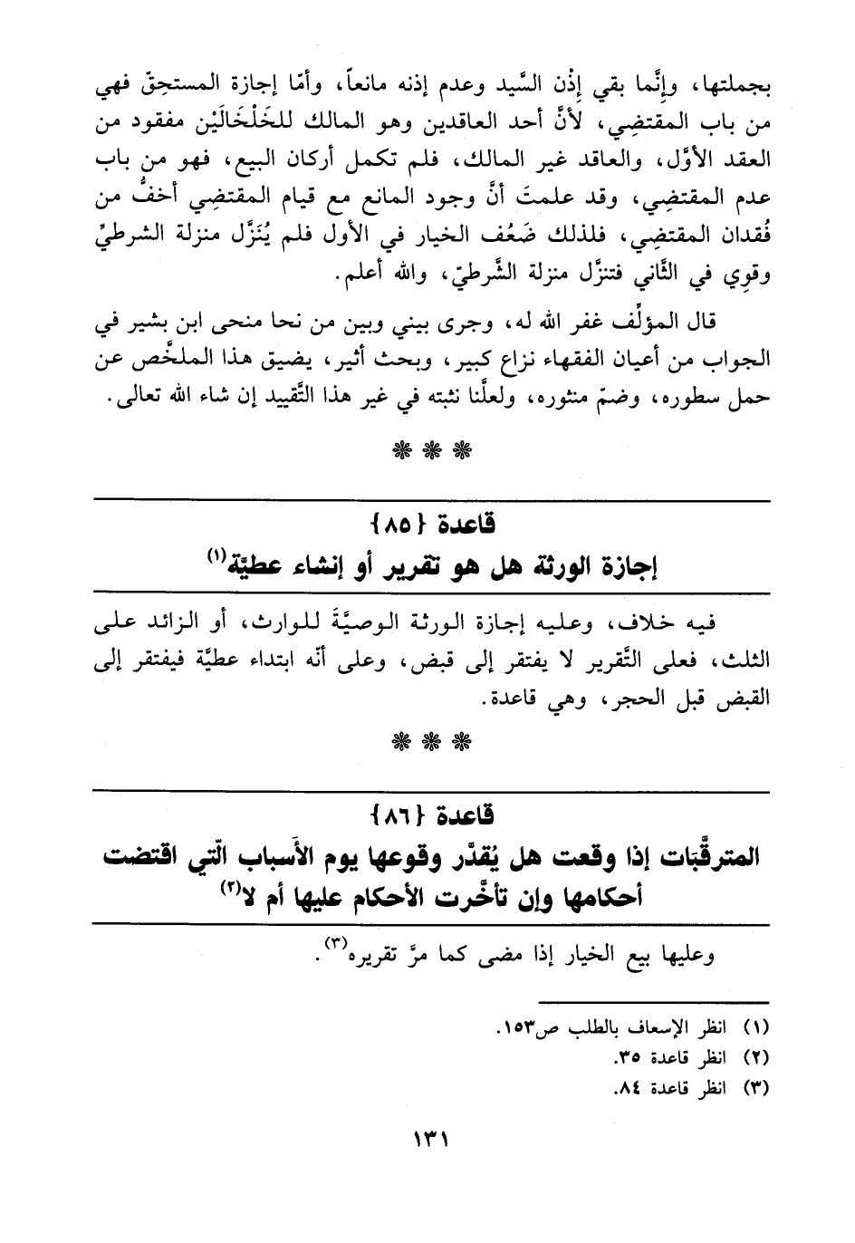 قاعدة (٨٥) إجازة الورثة هل هو تقرير أو إنشاء عطية