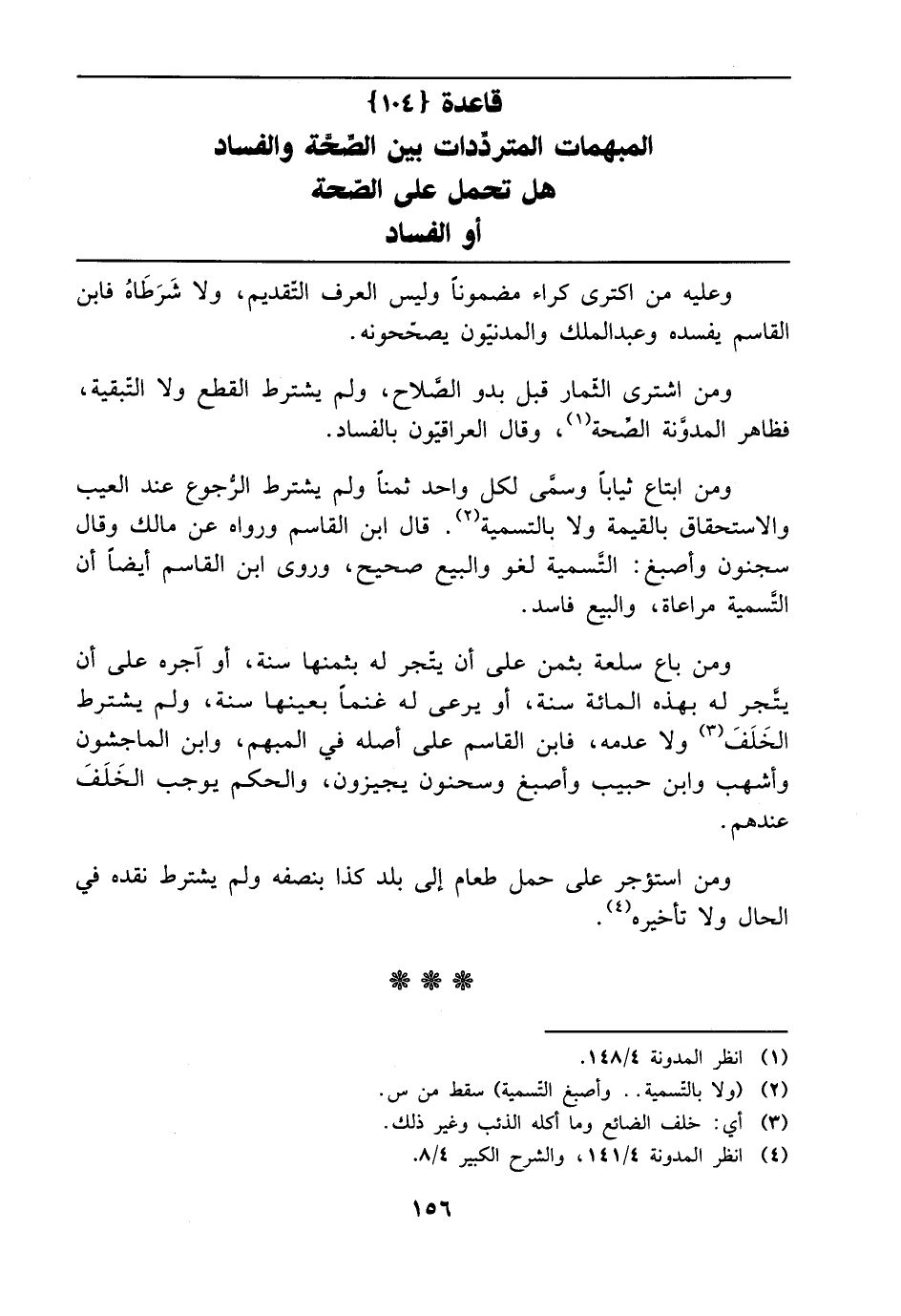 قاعدة (١٠٤) المبهمات المترددات بين الصحة والفساد هل تحمل على الصحة أو الفساد