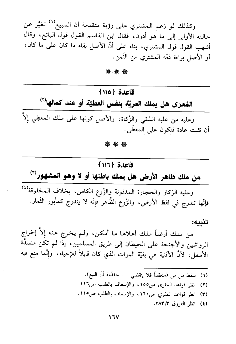 قاعدة (١١٦) من ملك ظاهر الأرض هل يملك باطنها أو لا وهو المشهور