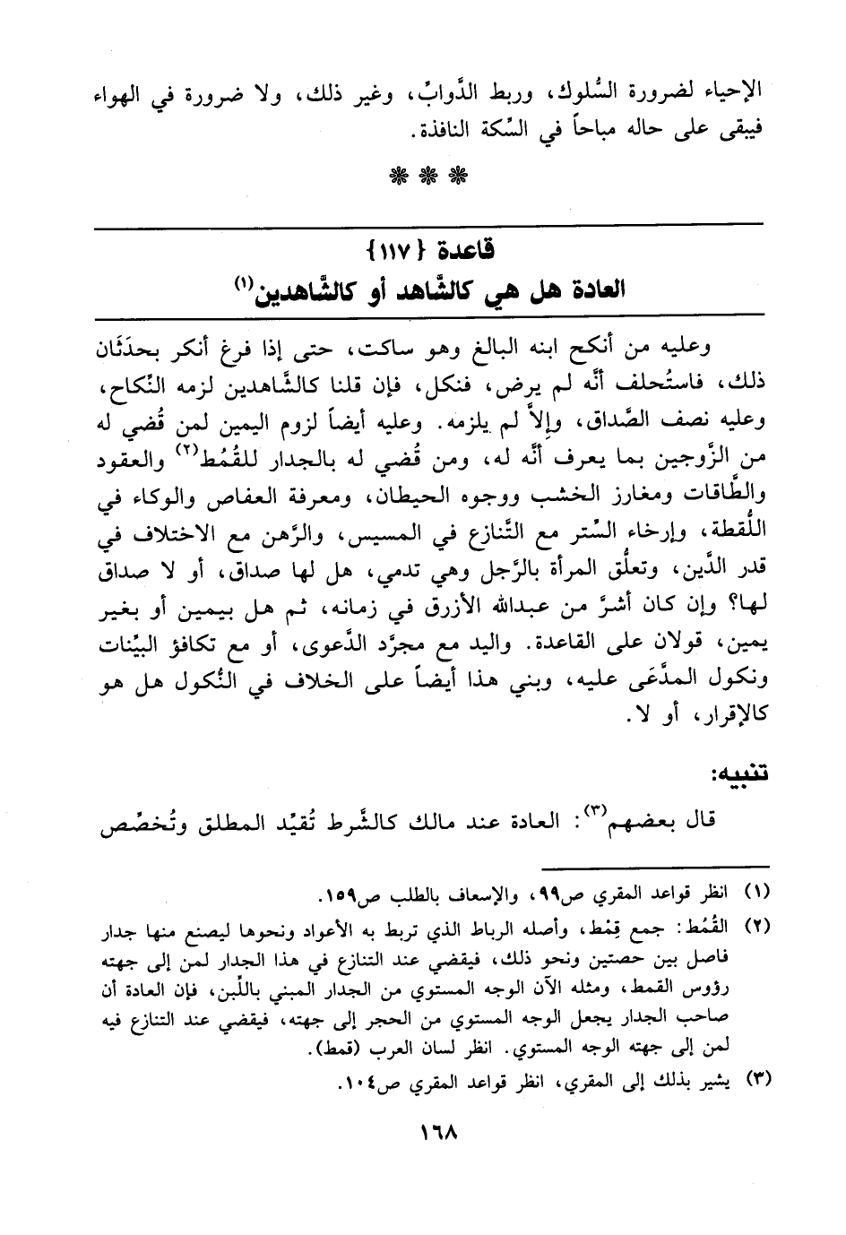 قاعدة (١١٧) العادة هل هي كالشاهد أو كالشاهدين