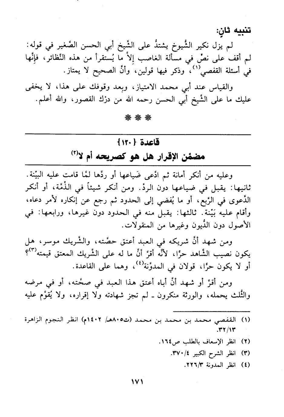 قاعدة (١٢٠) مضمّن الإقرار هل هو كصريحه أم لا