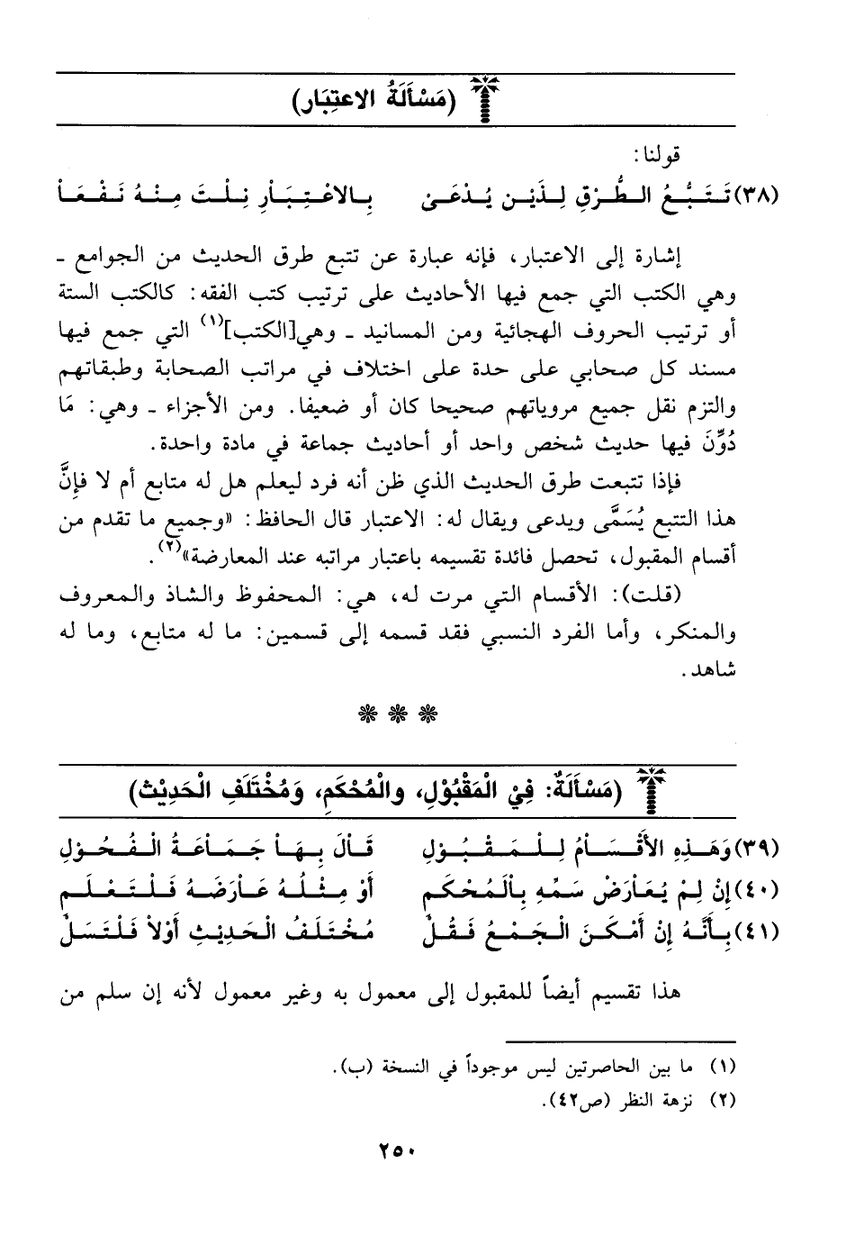 (39) وهذه الأقسام للمقبول ... قال بها جماعة الفحول