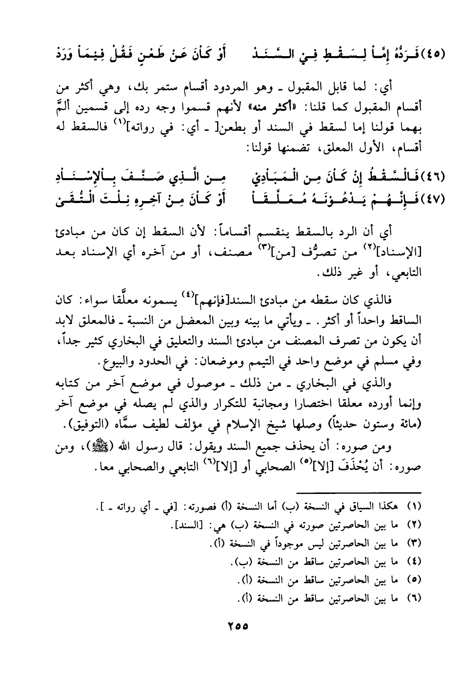 (45) فرده إما لسقط في السند ... أو كان عن طعن فقل فيما ورد