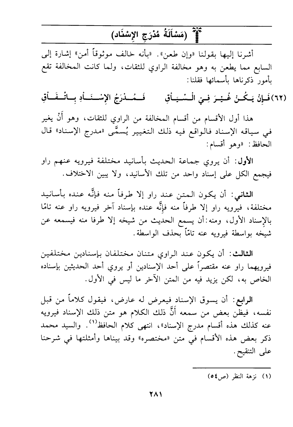 (62) فإن يكن غير في السياق ... فمدرج الإسناد باتفاق
