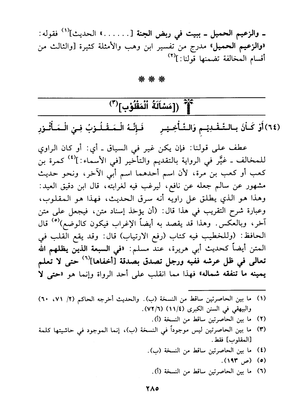 (64) أو كان بالتقديم والتأخير ... فإنه المقلوب في المأثور