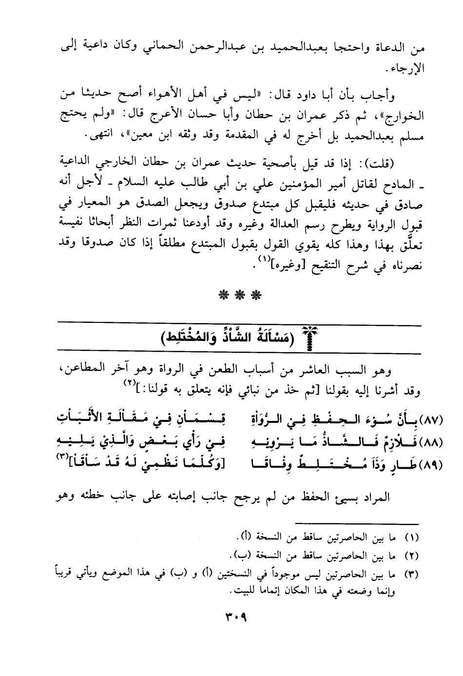 (87) بأن سوء الحفظ في الرواة ... قسمان في مقالة الأثبات
