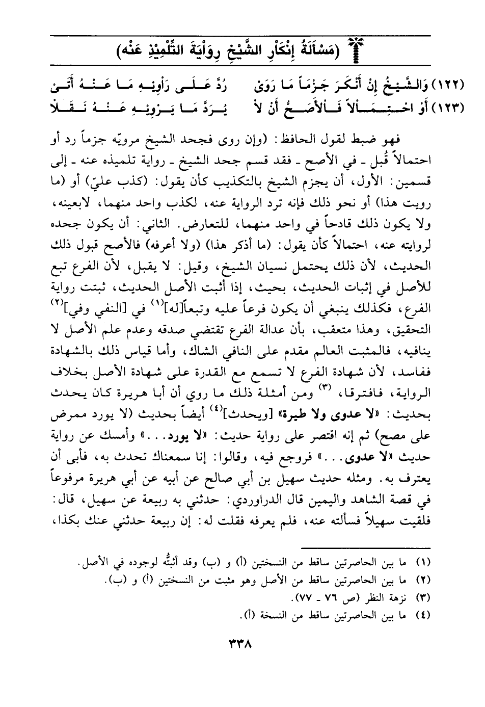 (122) والشيخ إن أنكر جزما ما روى ... رد على راويه ما عنه أتى