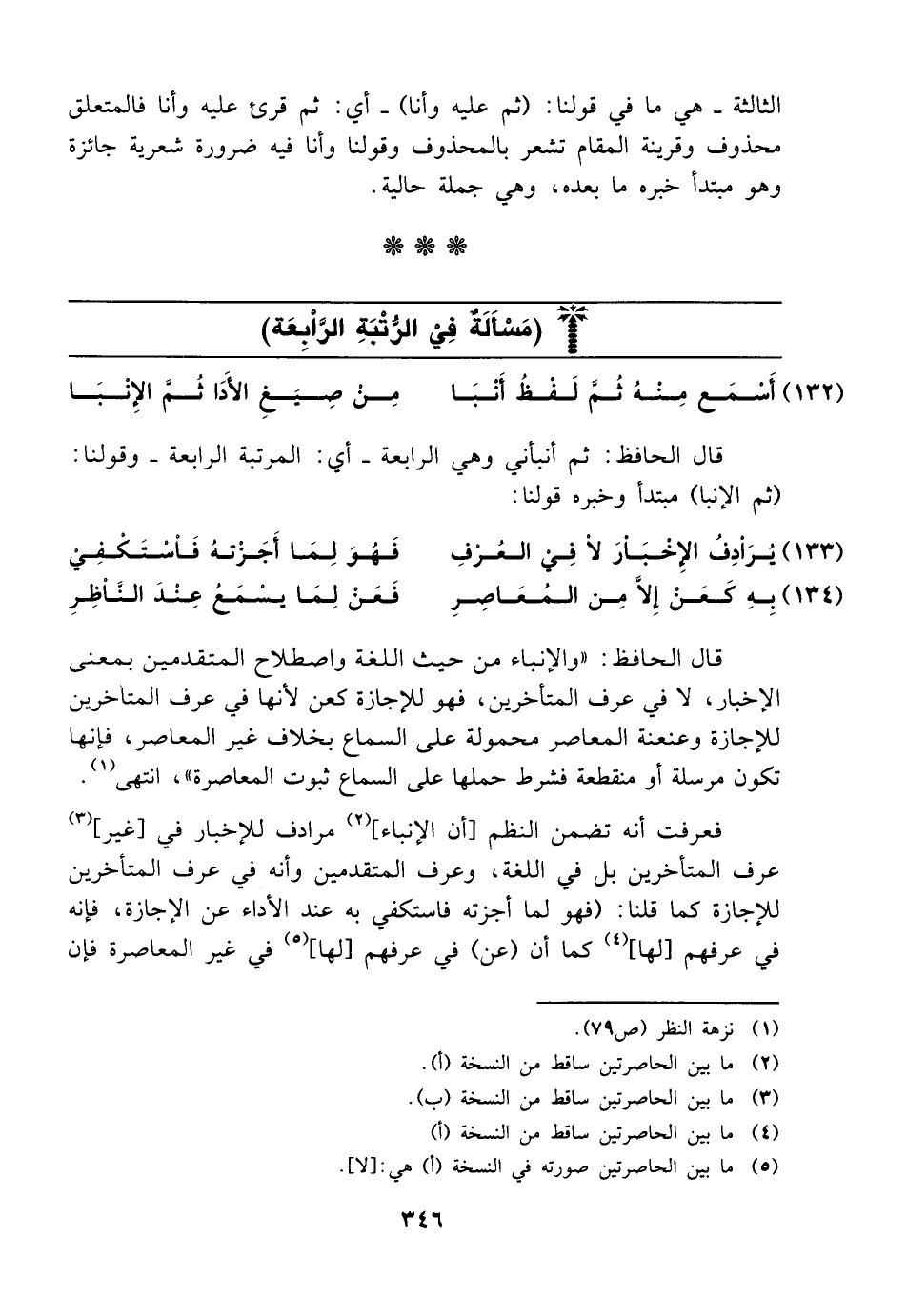 (132) أسمع منه ثم لفظ أنبا ... من صيغ الأدا ثم الإنبا