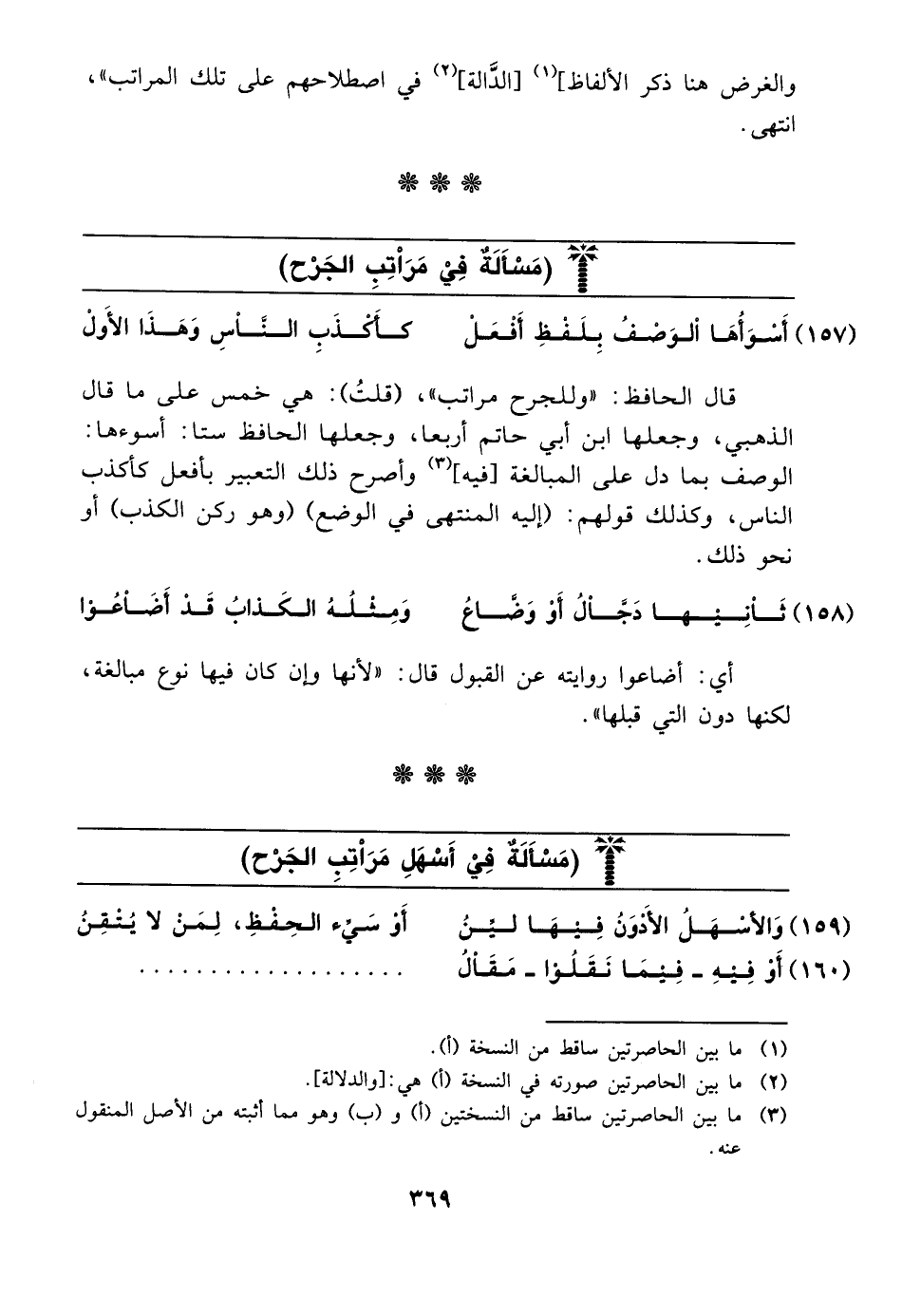 (158) ثانيها دجال أو وضاع ... ومثله الكذاب قد أضاعوا
