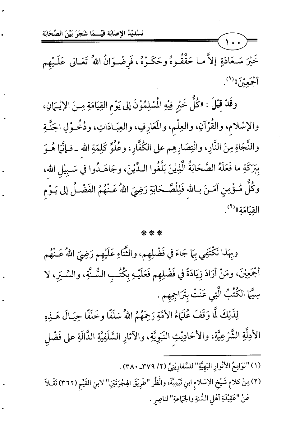(¬2) مِنْ كلامِ شَيْخِ الإسْلامِ ابنِ تَيْمِيَّةَ، وانْظُر «طَرِيْقَ الهِجْرَتَيْنِ» لابنِ القَيِّمِ (362) نَقْلاً عَنْ «عَقِيْدَةِ أهْلِ السُّنةِ والجَمَاعةِ» لناصِرٍ.