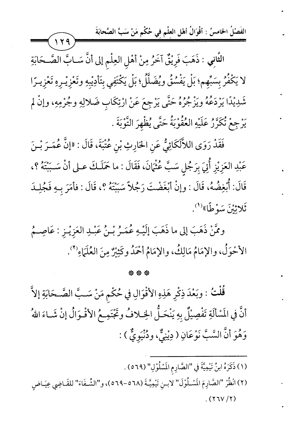 (¬2) انْظُرْ «الصَّارِمَ المَسْلُوْلَ» لابنِ تَيْمِيَّةَ (568 - 569)، و «الشِّفَاءَ» للقَاضِي عِيَاضٍ (2/ 267).