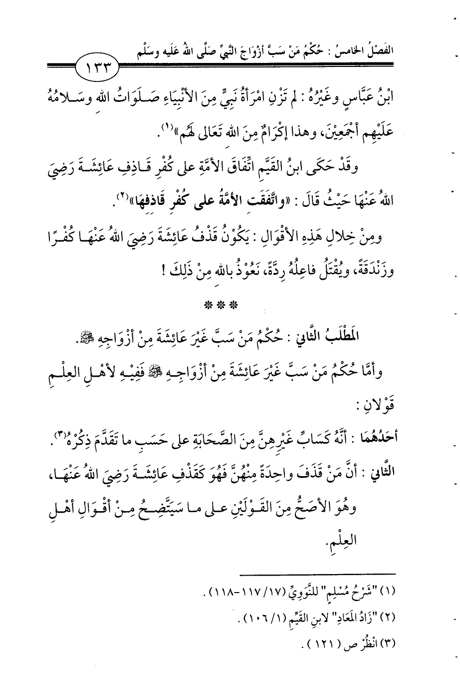 المَطْلَبُ الثَّاني: حُكْمُ مَنْ سَبَّ غَيْرَ عَائِشَةَ مِنْ أزْوَاجِهِ - صلى الله عليه وسلم -.