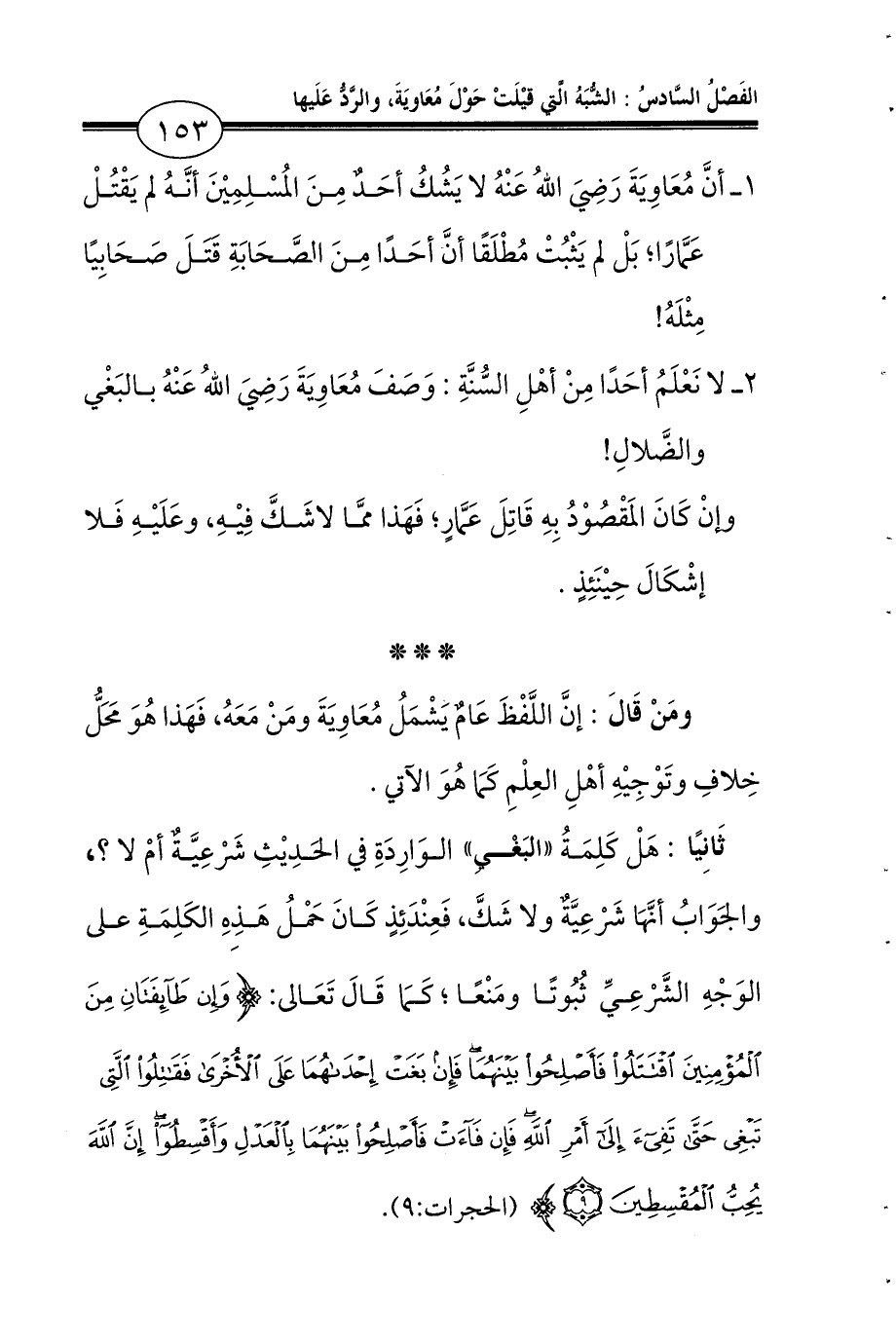 2 ـ لا نَعْلَمُ أحَدًا مِنْ أهْلِ السُّنَّةِ: وَصَفَ مُعَاوِيَةَ رَضِيَ اللهُ عَنْهُ بالبَغْي والضَّلالِ!