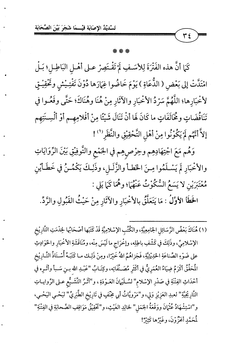 الخَطَأ الأوَّلُ: مَا يَتَعَلَّقُ بالأخْبَارِ والآثَارِ مِنْ حَيْثُ القَبُولِ والرَّدِّ.