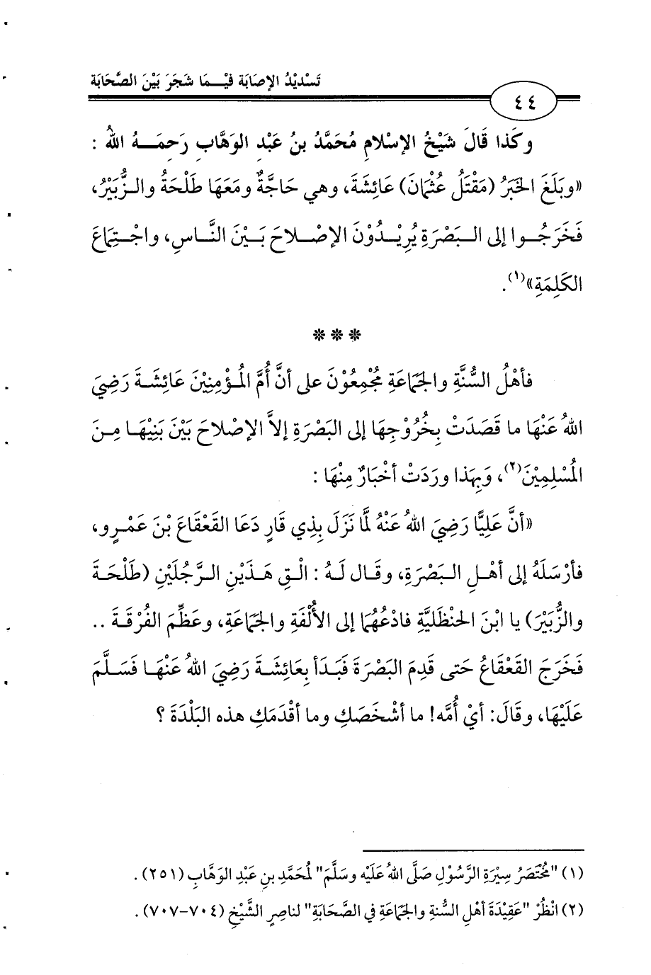 (¬2) انْظُرْ «عَقِيْدَةَ أهْلِ السُّنةِ والجَمَاعَةِ في الصَّحَابَةِ» لناصِرٍ الشَّيْخِ (704 - 707).