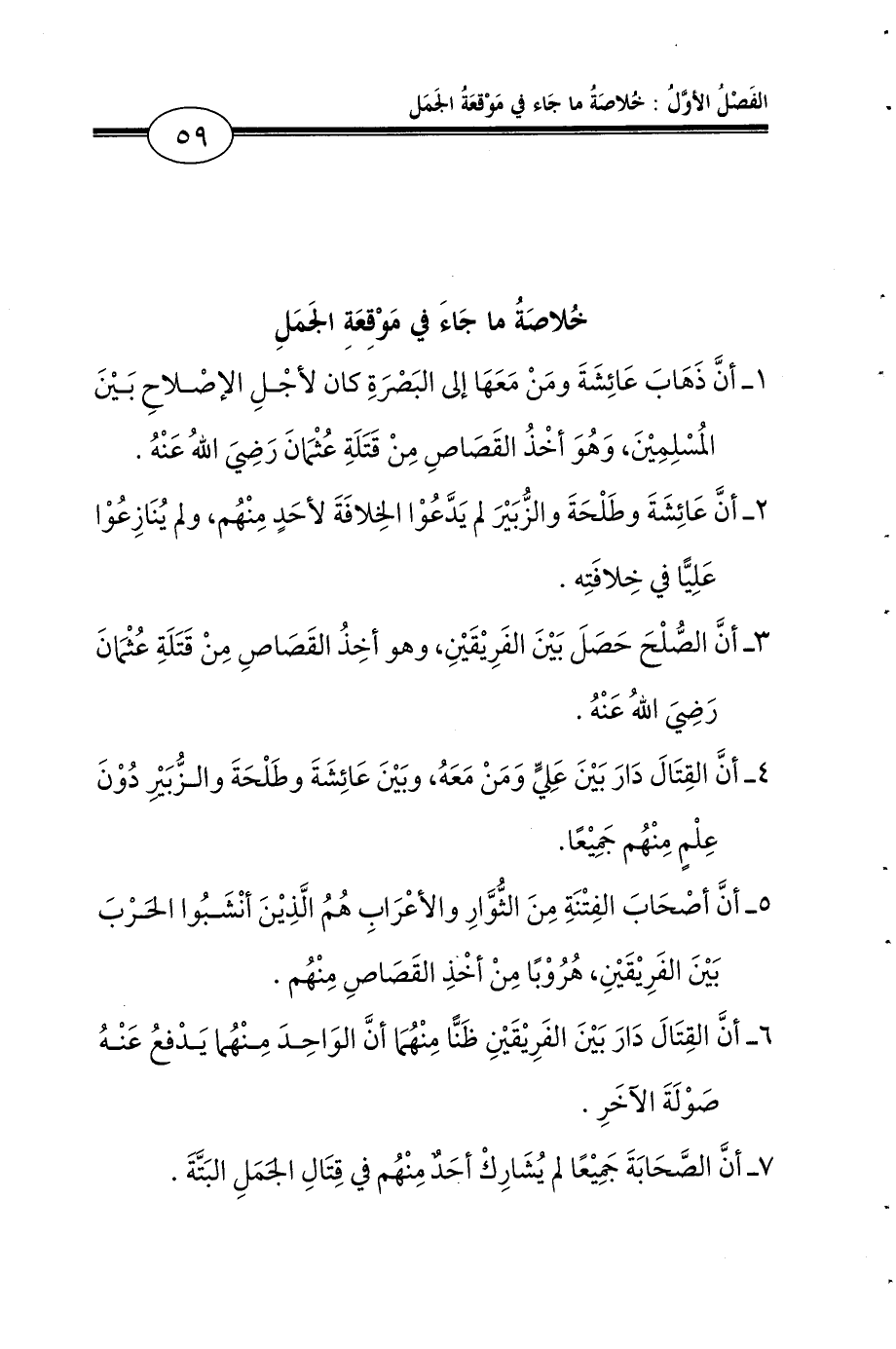 سَابِعًا: أنَّ الصَّحَابَةَ جَمِيْعًا لم يُشَارِكْ أحَدٌ مِنْهُم في قِتَالِ الجَمَلِ البَتَّةَ.