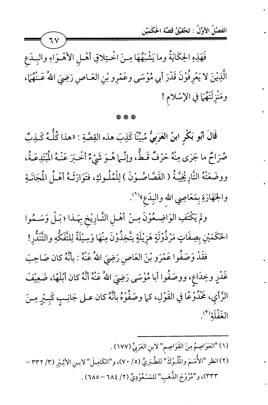 (¬1) «العَوَاصِمُ مِنَ القَوَاصِمِ» لابنِ العَرَبِيِّ (177).