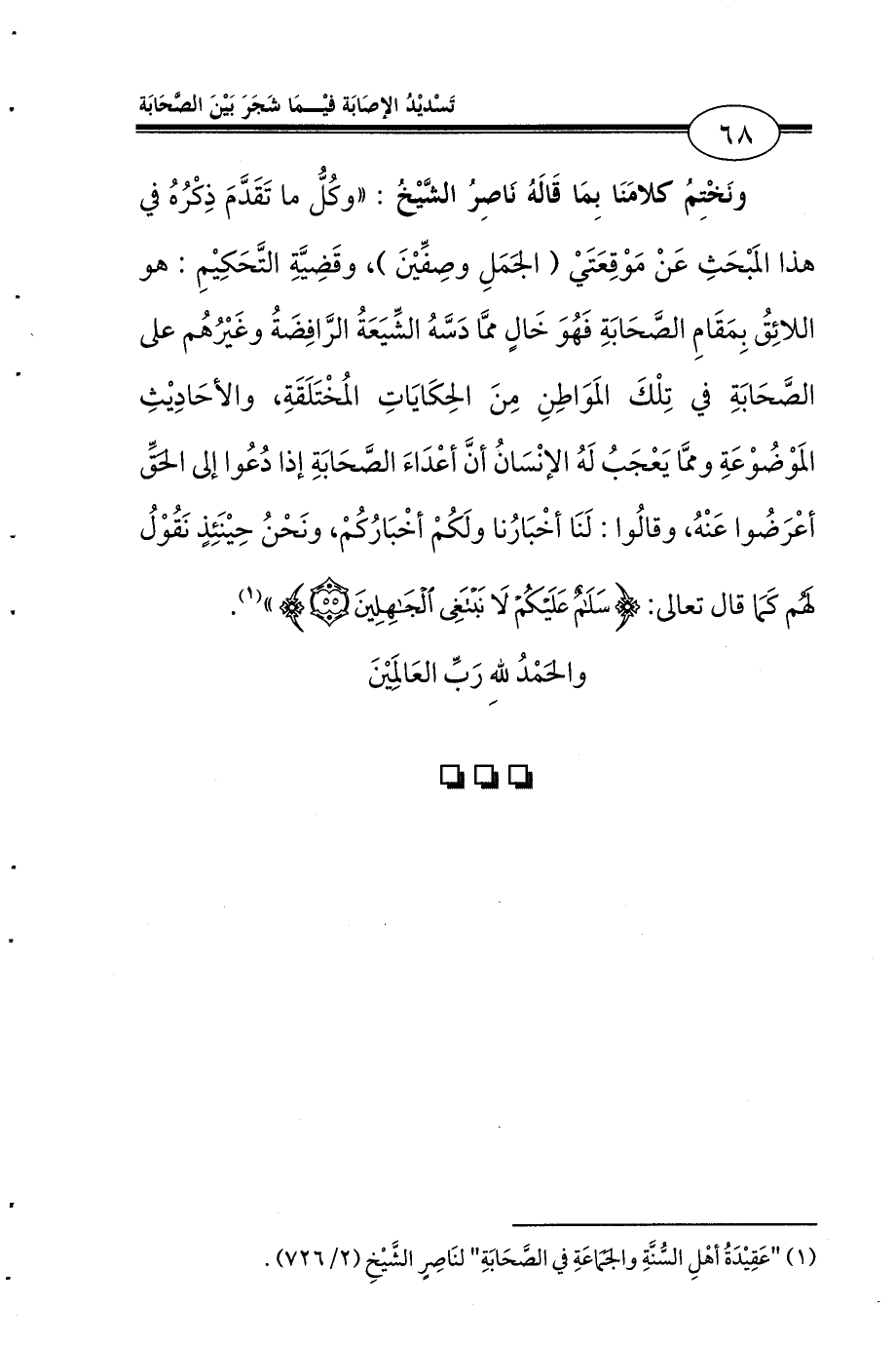 (¬1) «عَقِيْدَةُ أهْلِ السُّنَّةِ والجَمَاعَةِ في الصَّحَابَةِ» لنَاصِرٍ الشَّيْخِ (2/ 726).